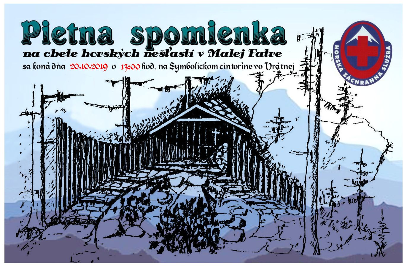 Dňa 20. októbra 2019 o 13:00hod sa uskutoční na Symbolickom cintoríne vo Vrátnej "Pietna spomienka na obete horských neštastí v Malej Fatre".