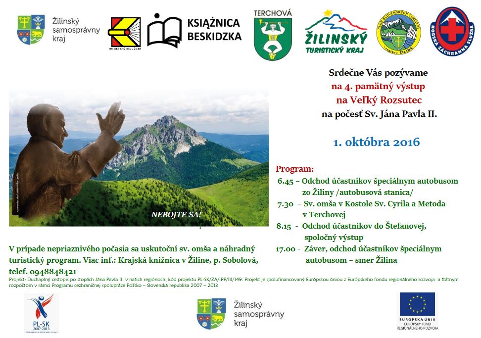 Srdečne Vás pozývame na 4. pamätný výstup na Veľký Rozsutec na počesť Sv. Jána Pavla II., ktorý sa ukutoční 1. októbra 2016