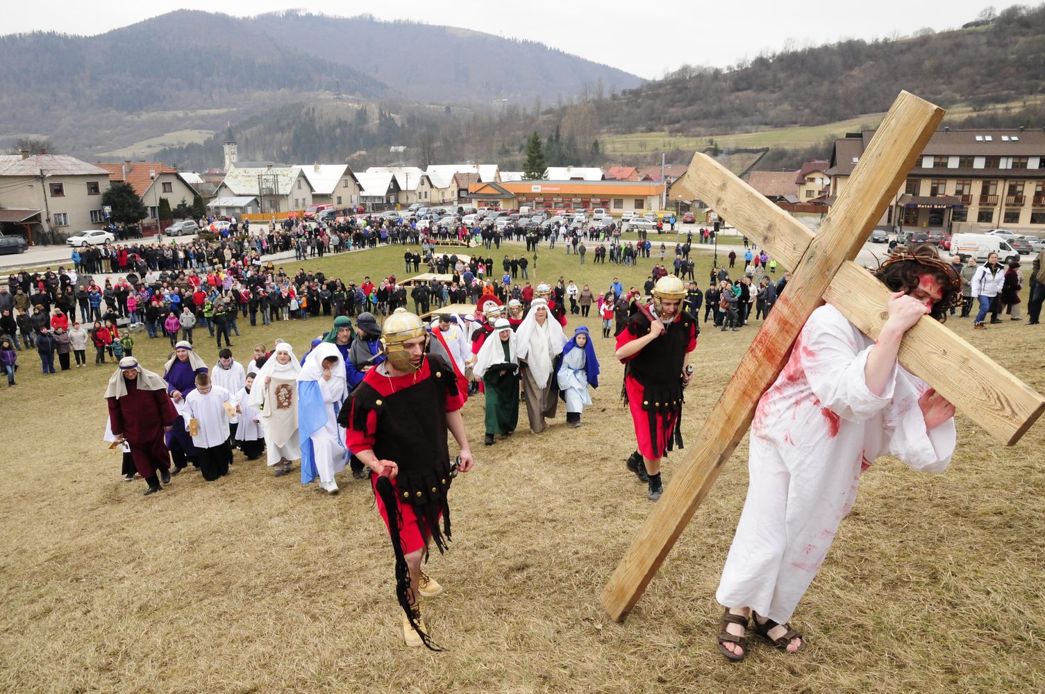 Už druhýkrát sa v Terchovej počas veľkonočných sviatkov na Veľký piatok uskutočnila inscenovaná Krížová cesta, ktorú si pre obyvateľov, ale aj pre množstvo návštevníkov pripravili nadšenci z Terchovského národného divadla. Amatérsky herci pod vedením Vlada Šveca odohrali takmer na profesionálnej úrovni strastiplnú cestu Ježiša Krista, pozostávajúcu zo 14 zastavení. Tie boli rozmiestnené od kostola cez starú časť obce až pod sochu Juraja Jánošíka. Tu sa cesta Ježiša skončila ukrižovaním. Fotografie vám prináša Milan Kosec video František Mucha.