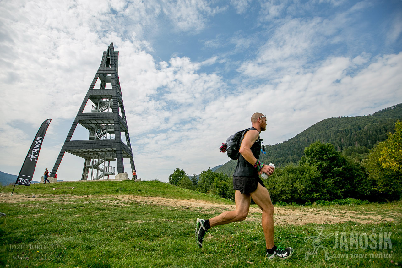 Symbolicky pod sochu Jánošíka bolo situované bežecké depo, kde sa k pretekárovi pridal jeho sprievodca a spoločne odbehli maratón (42,2 km) v okolí Terchovej a na území Malej Fatry. Spolu na bežeckej časti prekonali 3000 výškových metrov. Beh viedol tými najkrajšími časťami Terchovej cez Tiesňavy, Obšívanku, popri rozhľadni a cez Ploštiny k Hotelu Diery. Technickú pripravenosť preverili malebné Jánošíkové diery s množstvom rebríkov, premostení a schodov. Záverečná časť viedla cez Rozsutec a Medziholie na Poludňový Grúň, Chleb až do Snilovského sedla. Aj krásne výhľady, ktoré sú v bežných triatlonoch raritou, spôsobili nadšenie mnohých pretekárov.